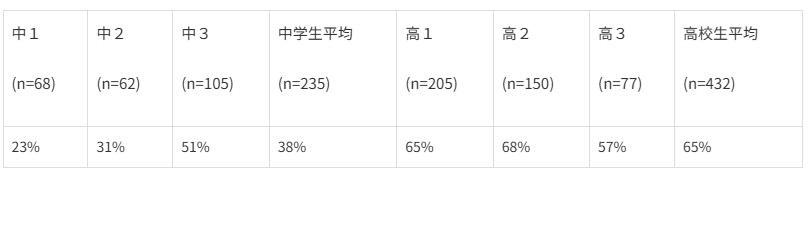 小学5年生から中学3年生まではゆるやかに上昇しています。