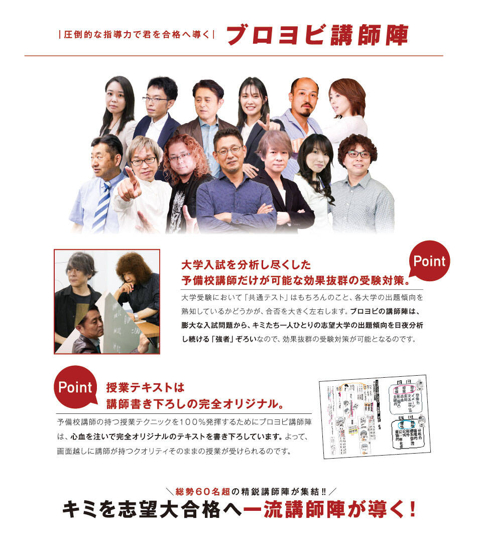 大手予備校をはじめとした全国の予備校で活躍されている実力派予備校講師を厳選し、天神や博多などに行かなくても大学受験に必要なハイクオリティーの授業を受講することができます。
